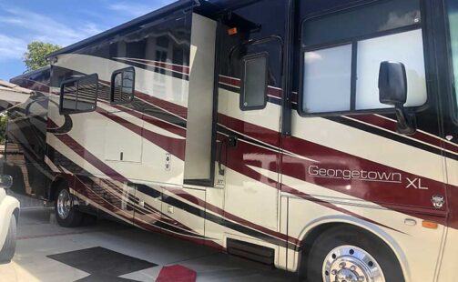 2013 Forest River Georgetown, class A engine gas V10, Three slide outs. Blue Ox tow package ample storage under the floor. Very clean hardly used. UPGRADES driving cameras on back and sides. Rooftop Satellite Dish that folds down while driving. Four TV’s: Living room Front windshield, bedroom and outside. Motorized retractable outdoor awning. Continuous hot water. Tankless hot water heater. Two air conditioners front and back bedroom. Full size refrigerator and freezer. Sleeps six, Electric Fireplace with heater. Gate valve for sewage system. Good tires. CLEAR TITLE. Great buy at $65,000. Serious buyers only